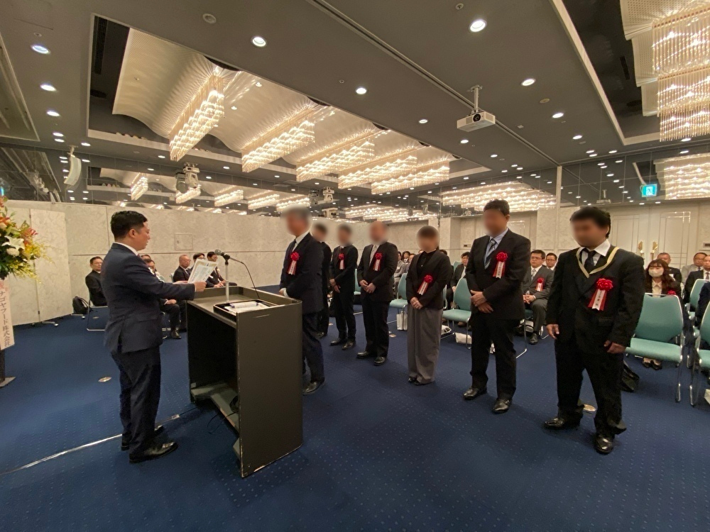 永年勤続表彰をはじめ、衛生標語コンクール表彰、代表取締役社長の山本や労働組合からの